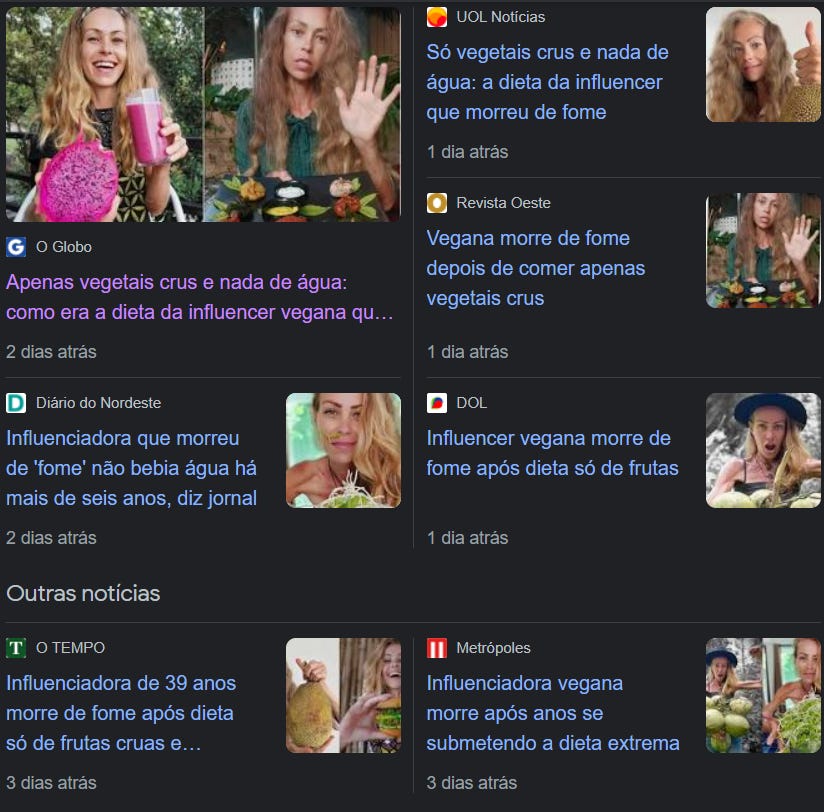 Essa semana, uma pessoa com anorexia e distúrbio alimentar grave morreu e os portais de notícias festejaram. Para aumentar cliques e agradar patrocinadores da pecuária, taxaram-na de vegana. Ora, veganismo, na parte da alimentação, definitivamente não é passar fome nem se alimentar só de vegetais crus (muito menos ficar sem beber água).